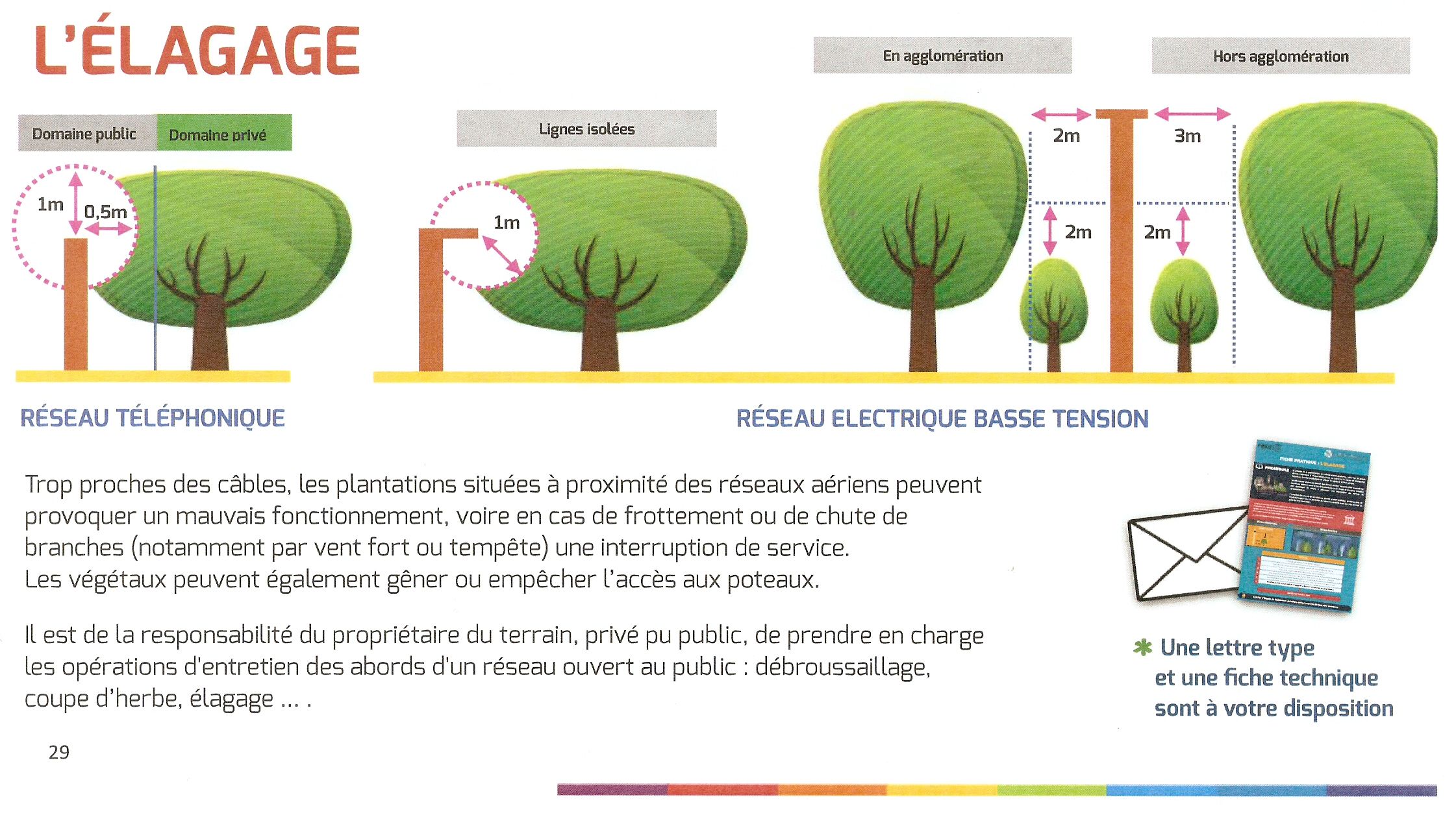 Pour assurer le bon état des lignes aériennes avec la fibre, il est impératif que les lignes soient dégagées de tout encombrement. Il est précisé que ce sont réglementairement les propriétaires qui sont tenus de réaliser les travaux nécessaires pour dégager les lignes. Il appartient aux Communes de veiller à ce que le nécessaire soit fait, en se substituant si nécessaire aux propriétaires pour les réaliser, mais en facturant à ces derniers les prestations ad hoc.